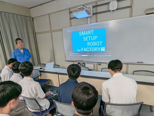 学生にロボット操作を体験してもらう授業です。